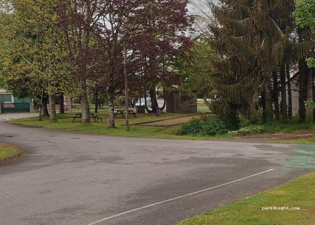 Merci à la ville pour cette aire d'accueil gratuite. Il y'a plusieurs emplacements pour camping car avec des buissons entre chaque emplacement, de l'herbe, ainsi que des tables de pique nique et des poubelles. On ne peut pas prendre l'eau potable avec le tuyau, mais avec une bouteille c'est toujours ça.