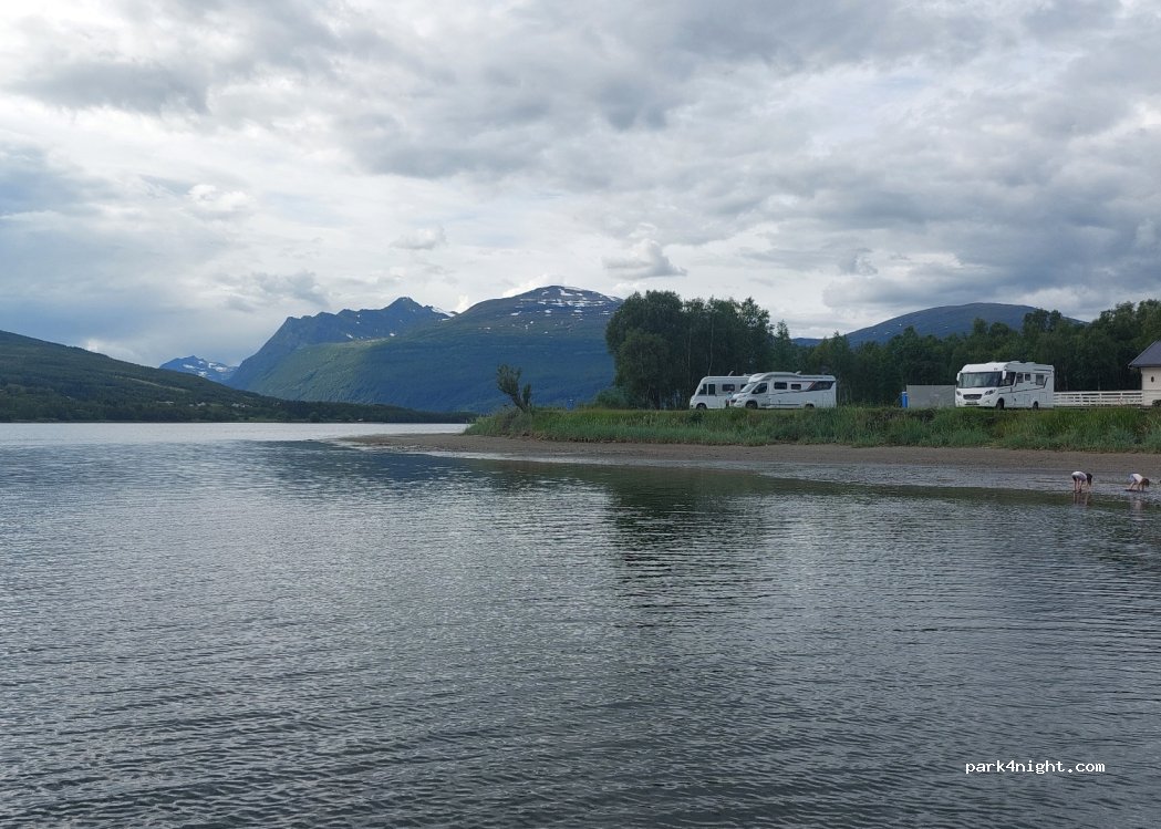 Beaux emplacements sur herbe au bord du fjord. 150kr eau et électricité inclus à régler à l'aide d'une enveloppe. Un monsieur est passé vers 18h pour demander si nous voulions utiliser la petite maison qui abrite toilettes et peut-être douche et cuisine. Etant autonomes, nous n'avons pas approfondi. J'ai juste enlevé 1 étoile car pas de vidange.