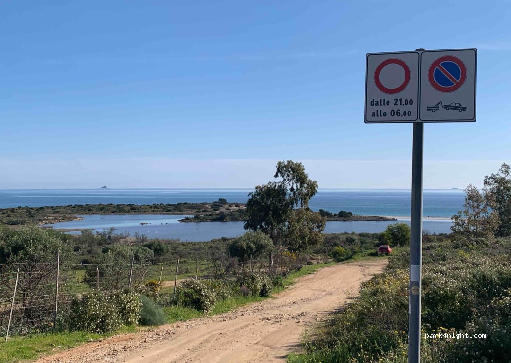 Bestätige Durchfahrtsverbot und Halteverbot von 21:00 bis 06:00 Uhr (Siehe Foto). Sand Straße am Berg mit vielen Auswaschungen. CAMPING VERHALTEN (Stühle, Schuhe, Keile, Fußmatte, Hundedecke, Solartaschen etc.) ganzjährig strikt auf Sardinien VERBOTEN.