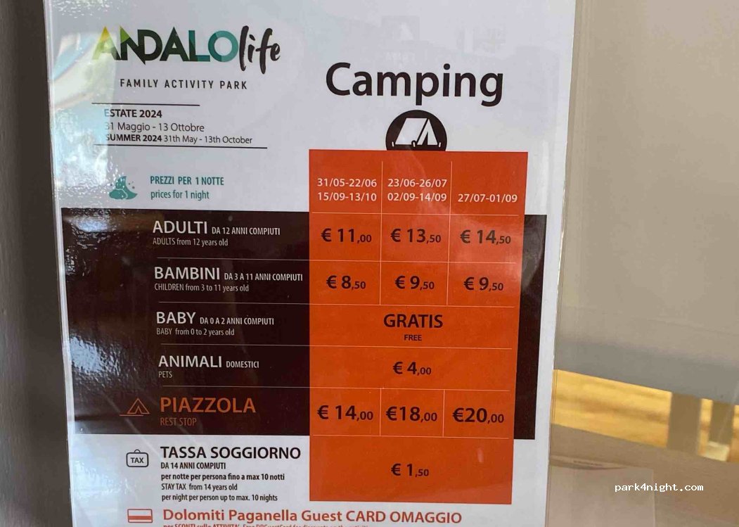 Buon campeggio ad Andalo (l’unico) nel bel mezzo del life family, un paradiso per grandi e piccini. Centro facilmente raggiungibile a piedi. Personale disponibile e gentile. Non lasciare scarpe fuori la notte, a noi ce ne hanno preso due paia (ci sono i cartelli). Docce gratuite. Prezzi in linea con i servizi