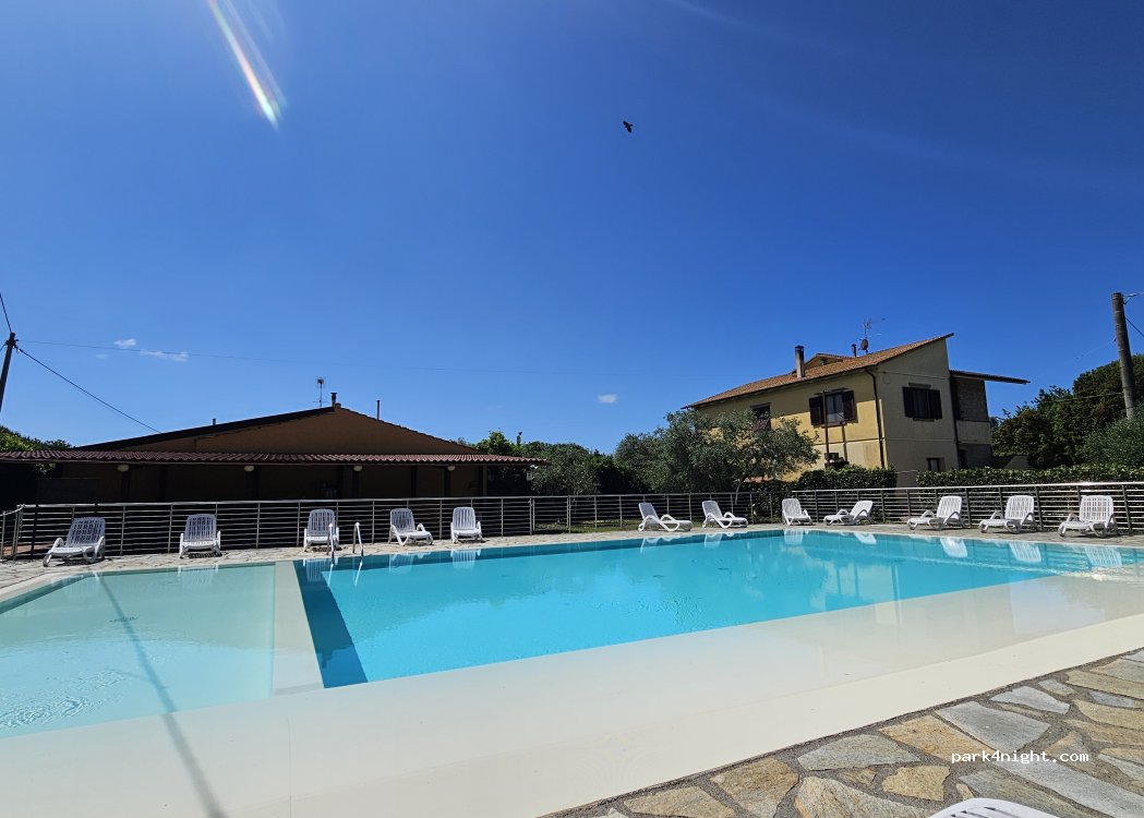 Nice agricamping. Organized and well defined pitches. Free electricity included in the price. On down side, paid hot water (1€) and paid swimming pool (5€) no Wi-Fi in place. On the bright side, very kind owner. The girl in the reception spoke English. Also just next to the exit there is a fresh vegetables and fruits little stall, they sell bread meat and also sandwiches (also speak English)