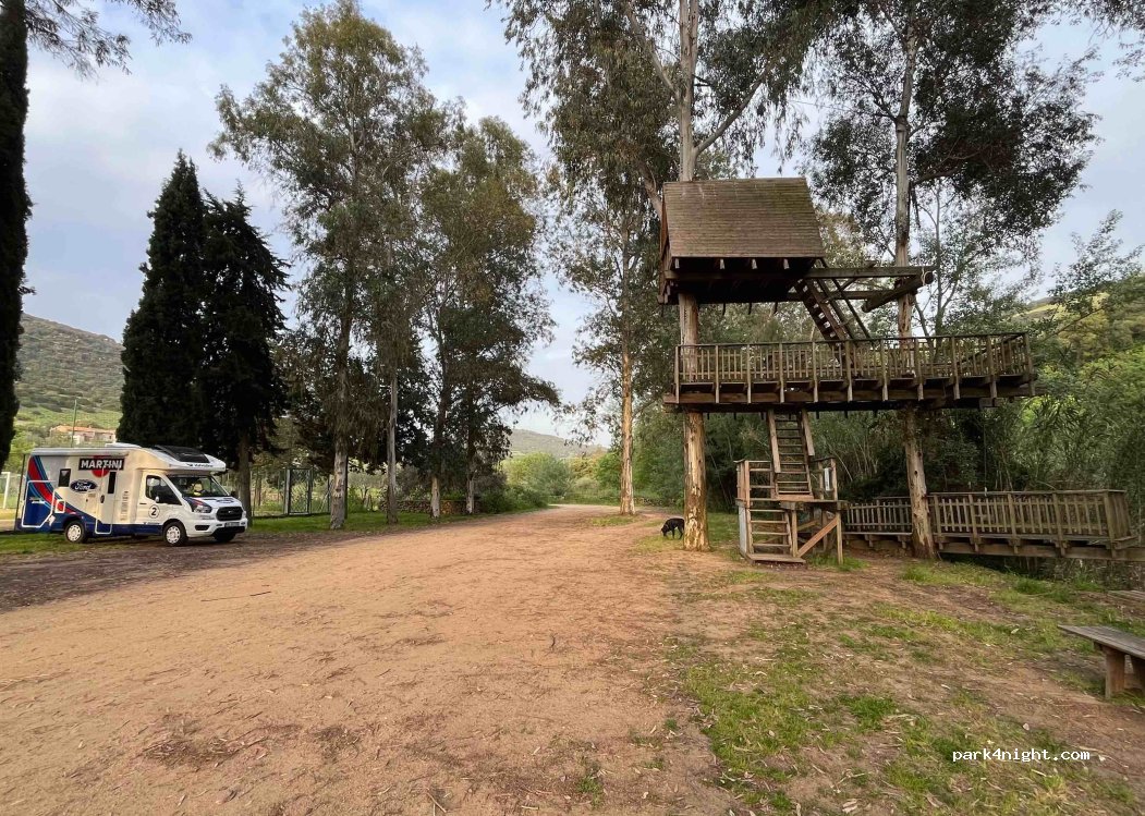 Parcheggio libero sia di giorno che la notte . Ottimo posto in cui si è circondati da un ampio parcheggio e fiume sottostante con una fantastica casetta sull'albero e a pochi passi il bar pizzeria mariù in cui si mangia una pizza assolutamente da non perdere.