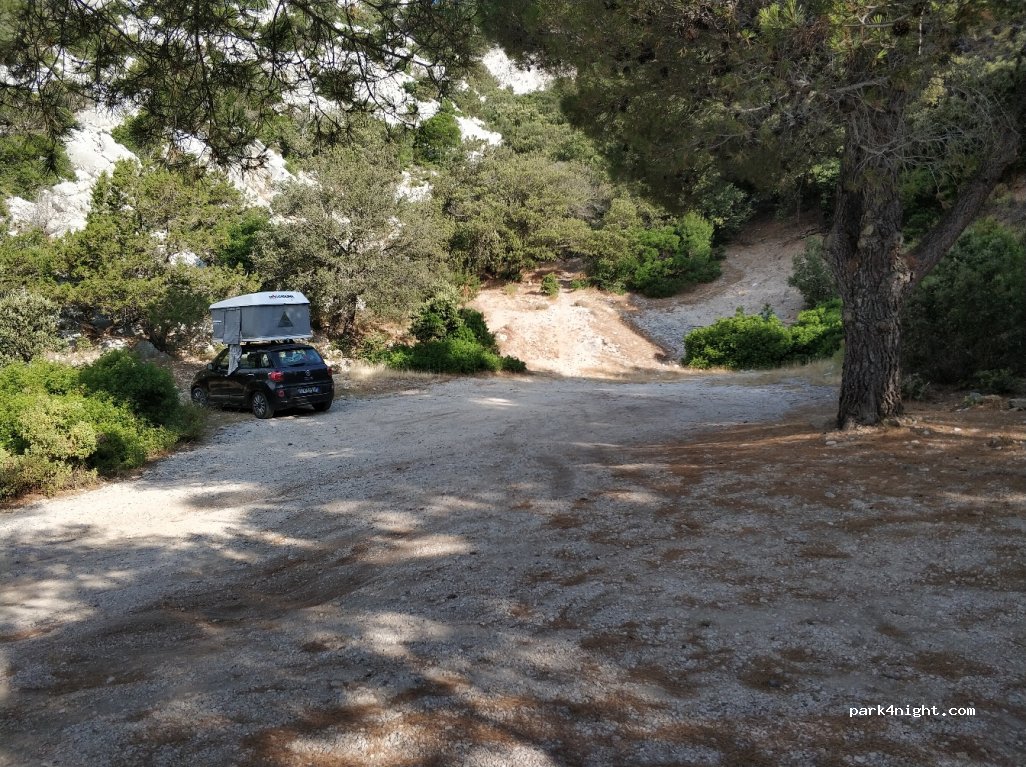 Land area for 5-6 pitches a few meters from the road leading to Cala Gonone. In the shade in the morning. A bit noisy from traffic but safe. We preferred to stop here than the other areas listed closer to Cala Gonone to avoid fines. It is forbidden to camp