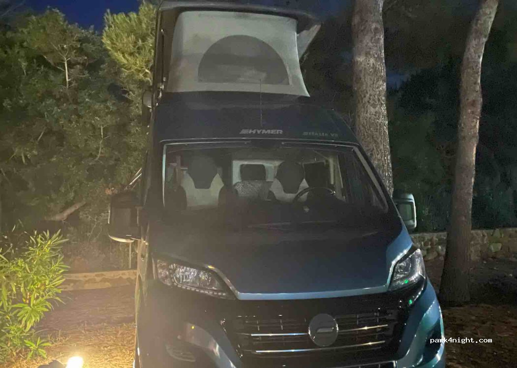 Parkplatz des Restaurants Il Lido, sofern man zu Abend isst kann man hier stehen. Parkplatz ist direkt am Meer, nette Strandbar nebenan. Wir empfanden Preis Leistung im Restaurant etwas zu hoch, das nächste Mal würden wir auf dem Parkplatz oberhalb parken und am Hafen essen (abends wunderschön!)