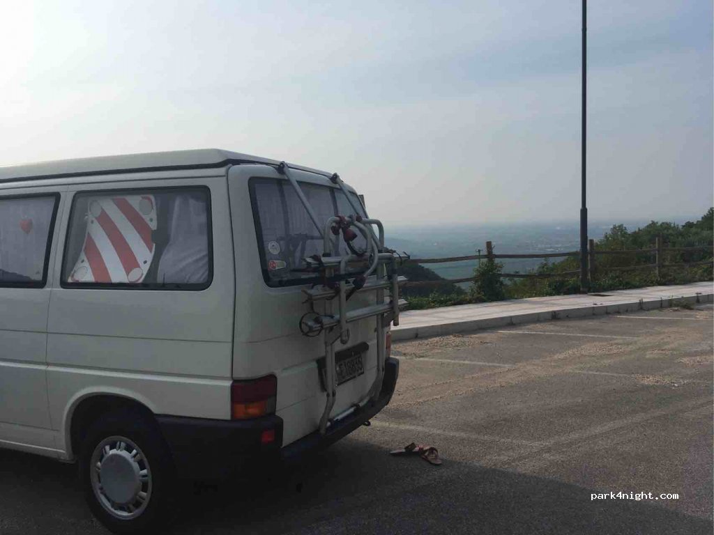 Sehr ruhige uns angenehme Nacht in einem sehr süßen kleinen Dorf mit schönen Ausblick auf Verona. In der Nähe beim Friedhof gibt Toiletten und mehrere Parkplätze die angefahren werden können.