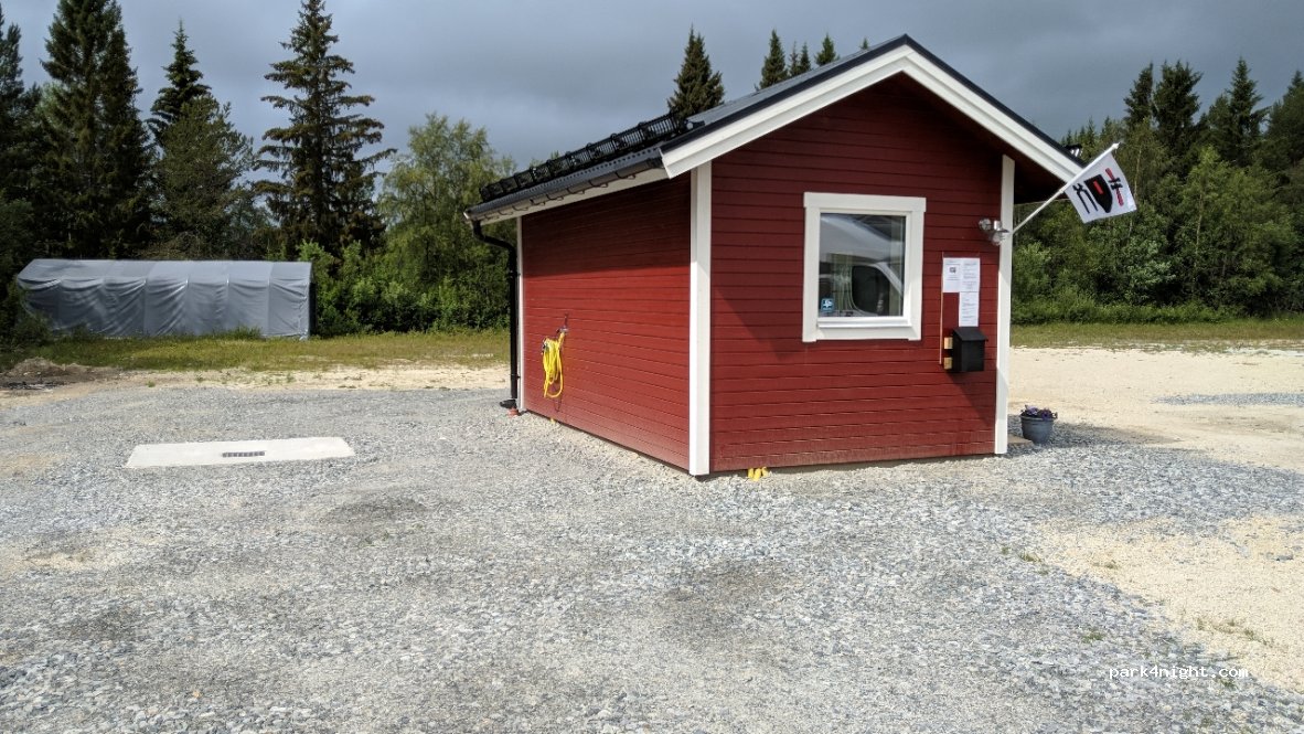 Sehr unschöner Platz, derzeit hauptsächlich von Wohnwägen während der Jagdsaison genutzt. Wir haben hier nur grauwasser abgelassen und Wassertank befüllt. 50kr Bezahlt, wie vielerorts in bar über einen Briefkasten. Müllentsorgung scheint nur für Nachtgäst*innen vorgesehen. Recyclingcontainer sind aber vorhanden.
