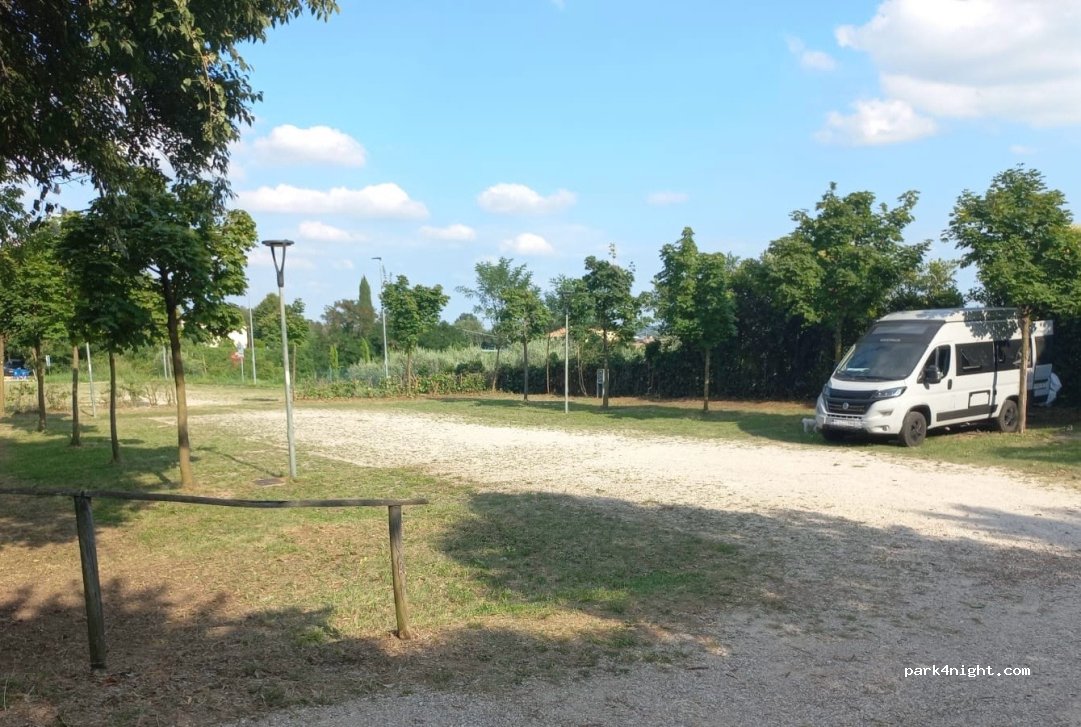 área municipal para autocaravanas de la ciudad de Asolo, situado a pocos pasos del centro histórico. El aparcamiento cuenta con 15 parcelas, servicio de carga y descarga, electricidad y una zona de picnic con barbacoa. Abierto todo el año y con la posibilidad de alquilar bicicletas eléctricas. Para acceder, es necesario escanear el código QR en el aparcamiento.