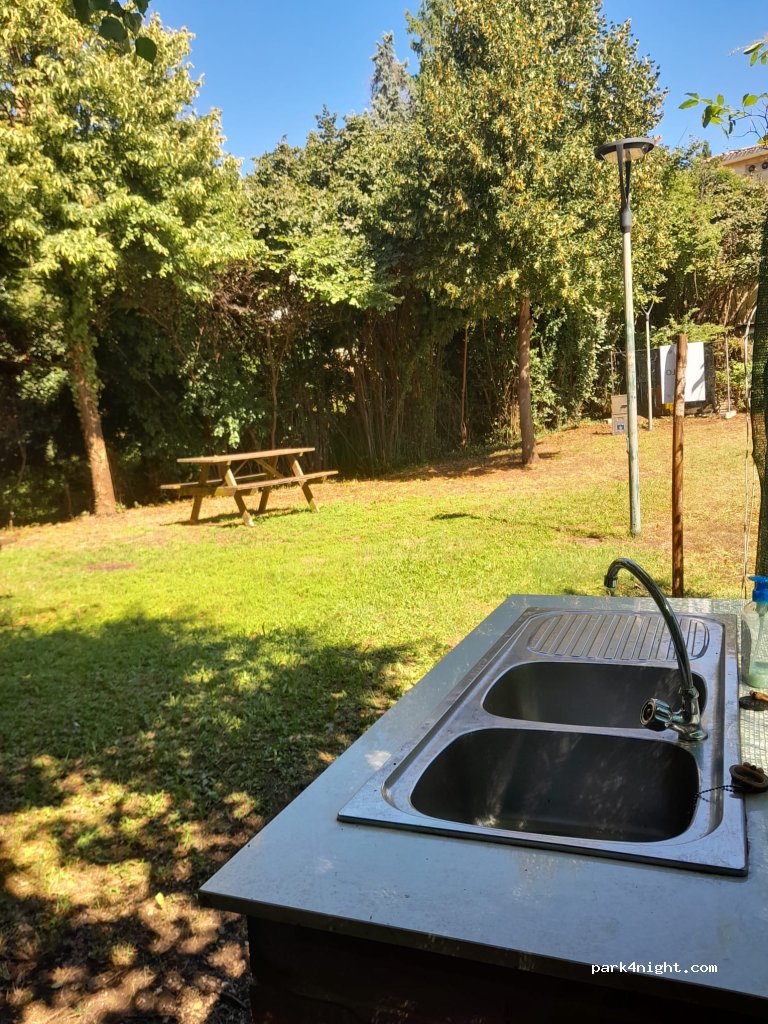 area tranquilla, ombra su un lato, a 10min dal centro storico (in salita). Corrente, pozzetto di scarico, lavabo, area pic nic con panche e barbecue. Registrazione tramite qr code, pagamento contanti, 10euro.