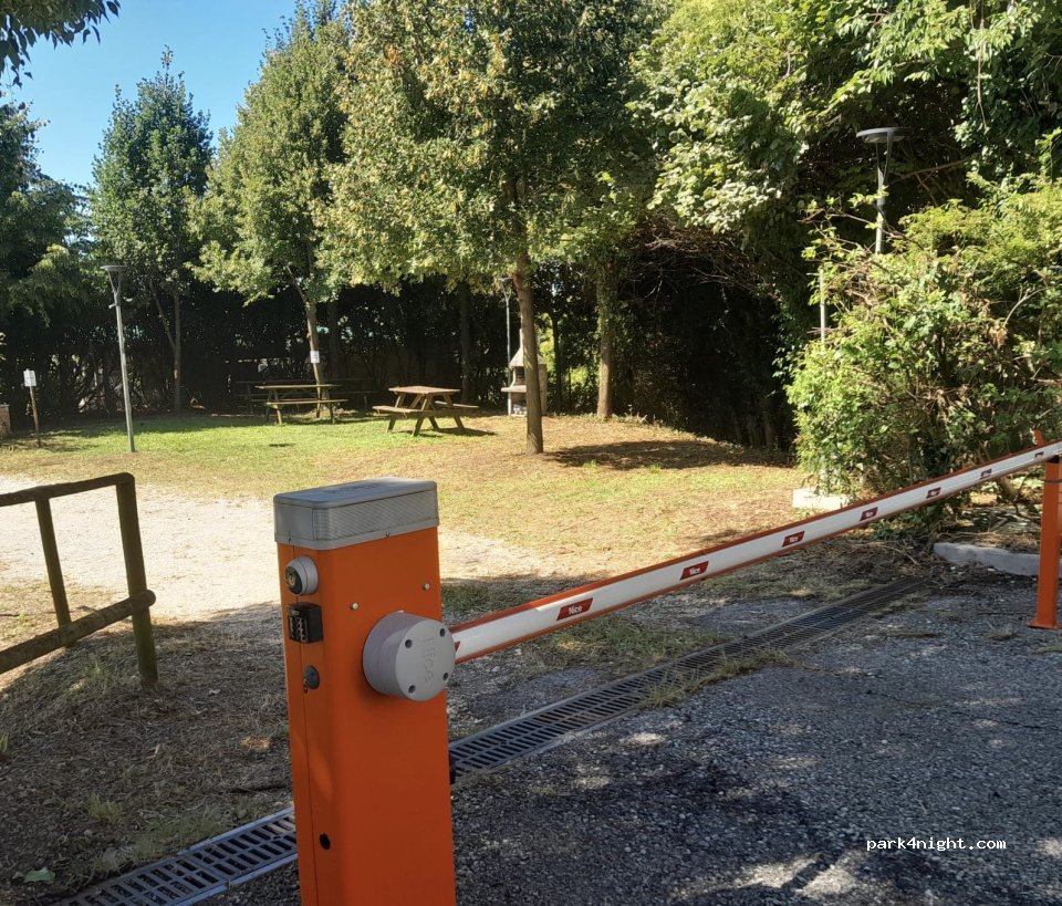 Parcheggio ampio con tutto disponibile. Il pagamento deve essere versato dentro una bustina e messo nella casetta. Solo contanti. Posto tranquillo e silenzio, con area picnic e barbecue all’interno.