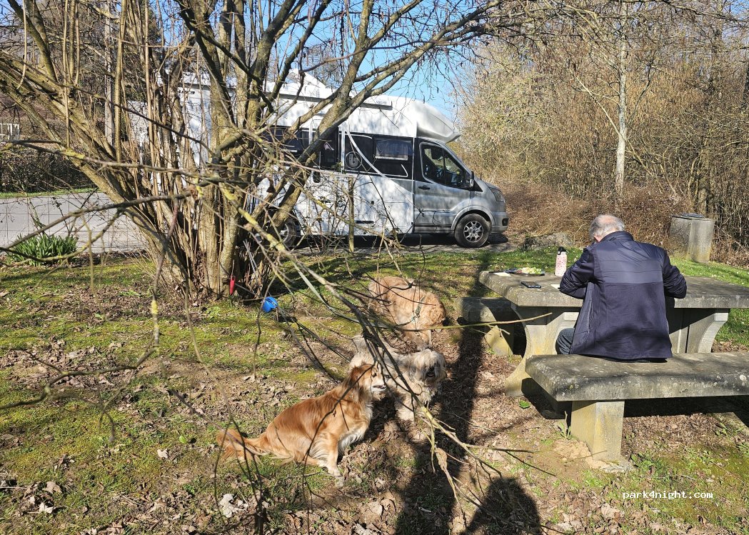 petite aire de pique-nique avec table en pierre très agréable. Nous y avons pris notre déjeuner, promené nos chiens avant de reprendre la route. Les places conviennent pour des véhicules de moins de 7m.
