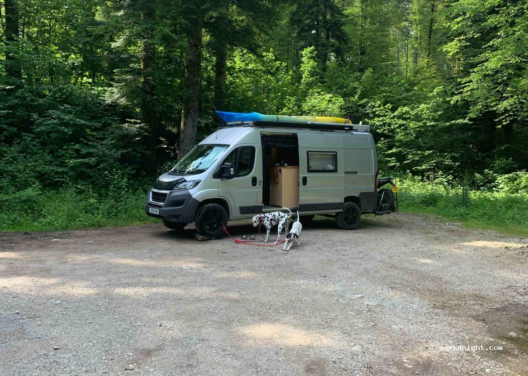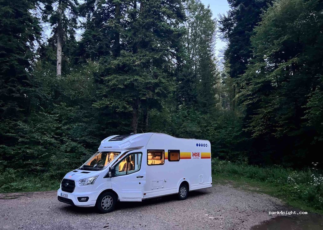 lieu très joli dans la forêt. Mais tout de même pas mal de passage de voiture. En été. Il y avait 3 autres camping car avec nous.