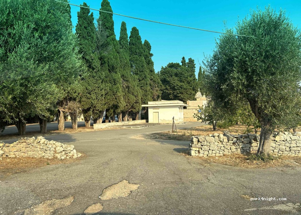 Parcheggio nei pressi del cimitero ho sostato un pomeriggio ed il posto è molto tranquillo nella periferia di Turi. Non ho potuto verificare l'effettiva disponibilità del carico Acqua poiché il cimitero era chiuso. A mio giudizio posto tranquillo anche per una eventuale sosta notturna