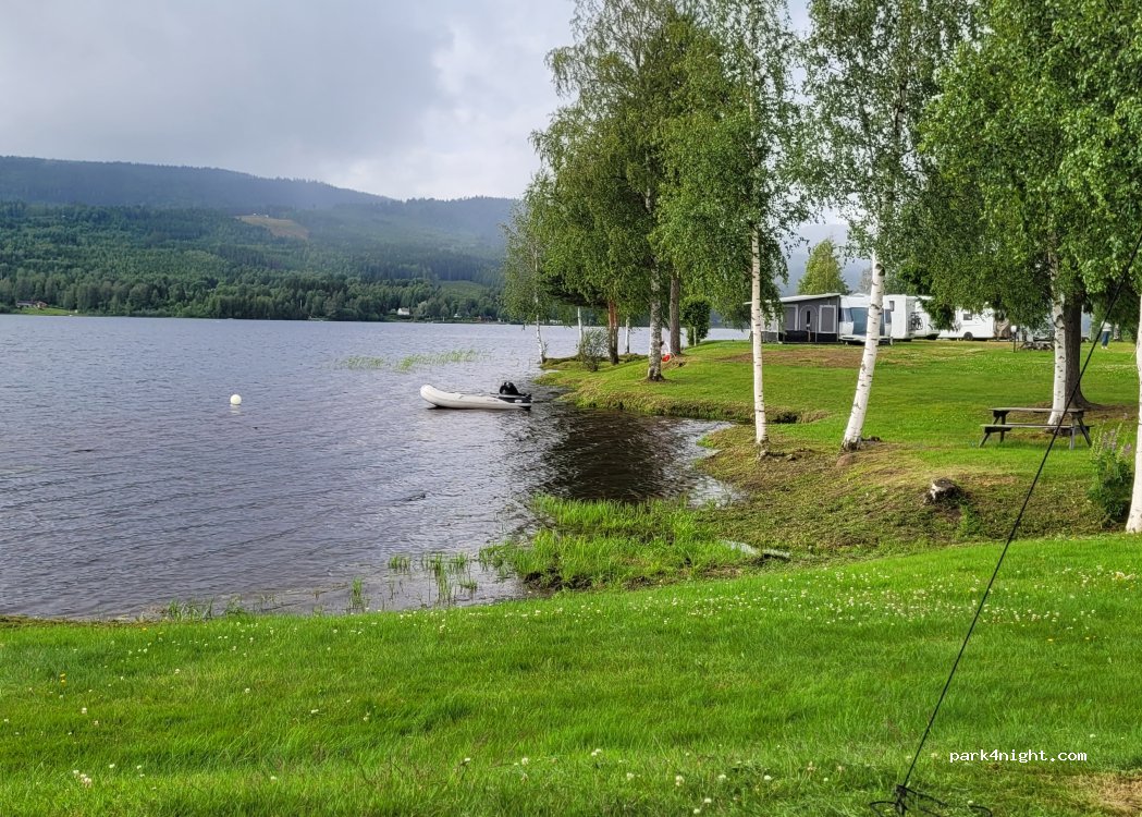 Nice little campsite. Right on the shore of Trysil elva. The owner was very attentive and took excellent care of us. There is a small MTB park on site. Some of the sanitary facilities are older, but they are in good condition and nicely renovated. Everything has its charm. The footpath takes you safely to the village in just a few minutes.