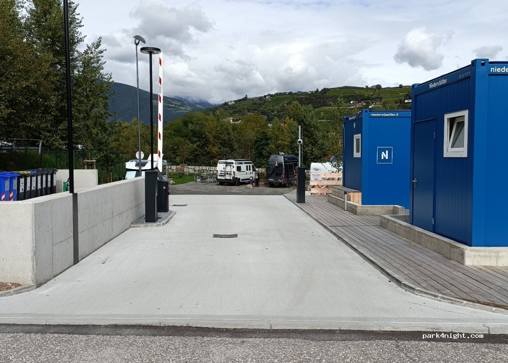 Piccolo parcheggio, hotel / campeggio ma non utilizzato. Dato che il campeggio era occupato, siamo stati mandati qui gratuitamente. ma puoi anche richiedere docce per una tariffa giornaliera completa. Una soluzione di emergenza per tutti coloro che si rendono conto che l'altro parcheggio fuori Bressanone è a circa 900 m di distanza, sorvegliato dalla polizia e sempre molto piacevole.