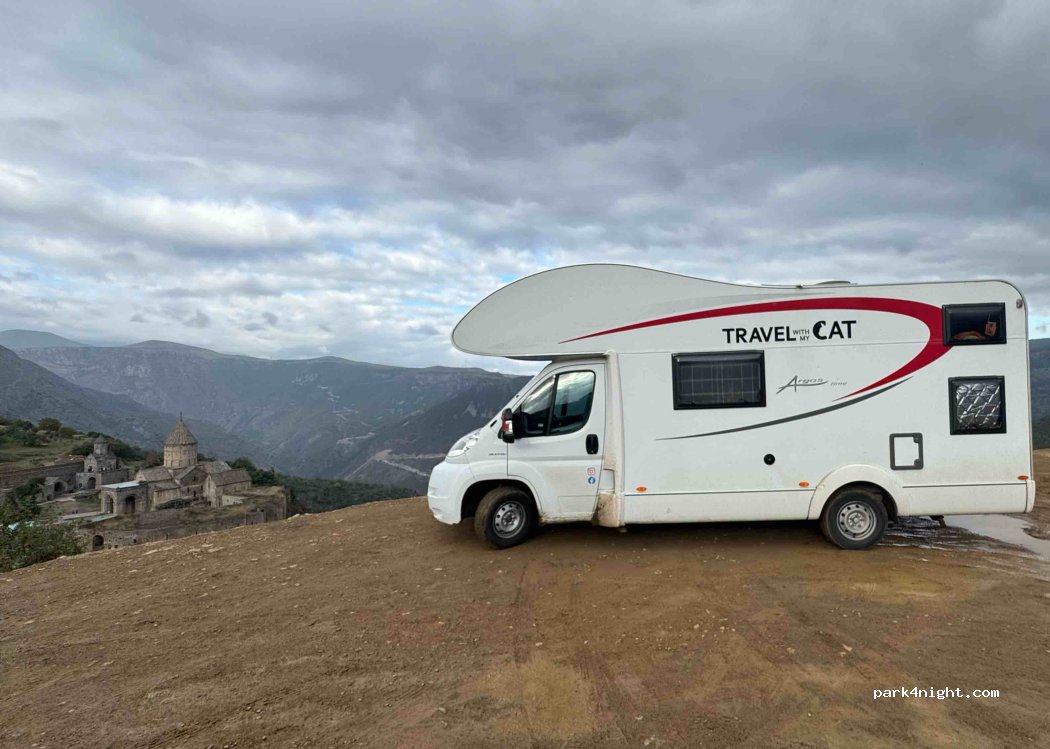 Wow wat een plek! Sochtends heb je mooi uitzicht op het klooster. Alleen één nadeel, we stonden soort van ingeparkeerd door vrachtwagens die kwamen uit Iran