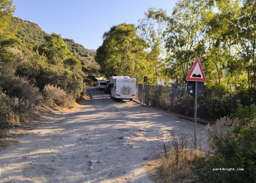 Zona para aparcar en el lateral de la carreterita, no apto para vehiculos grandes, solo Camper pequeñas. Solo vale la pena ir y aparcar si vas a hacer el Sendero a las calas.