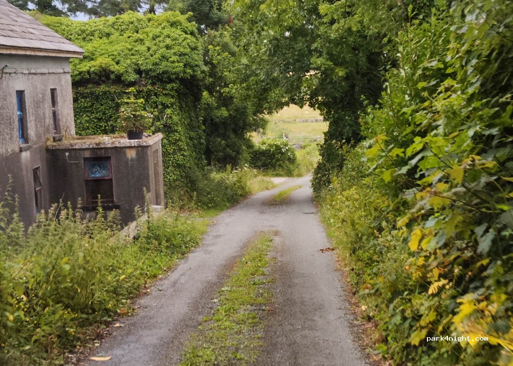 Ross Erilly Friary Parking lot with gravel at a nice ruin of the "abbey" in the middle of meadows. Access via narrow road from a junction in Heartfort. no restrictions and no service. Capacity max 2 motorhome.