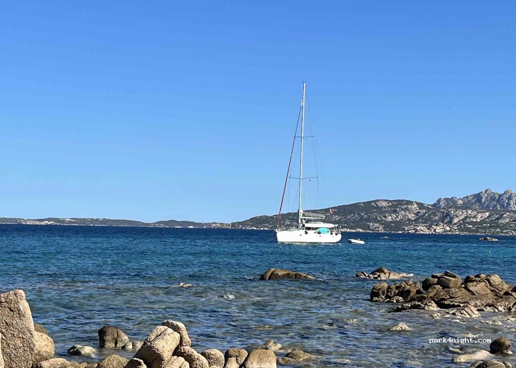 parcheggio molto tranquillo, su asfalto, vicino al paese. di fronte ad un grande prato e a dei tavolini per picnic sul mare,con spiaggette molto strette. lungo mare carino che porta al paese di Cannigione.