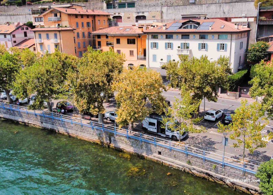 Perfetto per la notte, è gratuito. Di giorno c'è una zona con disco orario 2 ore e una a pagamento. Su un lato puoi svegliarti vista lago.