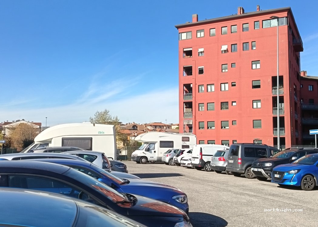 A normal free parking lot where you can stay to visit the city! I would take valuables from the car with me, otherwise there are enough other cars and campers here. You walk about 15 minutes to the arena and it is a good place if you want to spend a day in Verona. NOT FOR OVERNIGHT !!