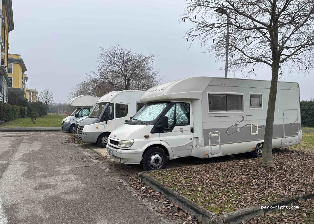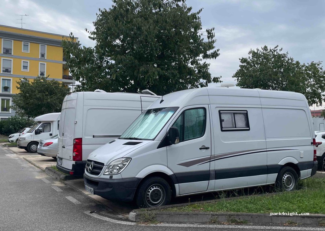 très bon parking calme à 20mn à pied du centre ville. nous y avons passé la nuit pas de bruit très calme. pour y entrer prendre la via berardo Maggi.