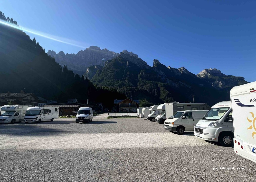 Sono stato più volte nel corso dell estate, ottimo punto d appoggio per muoversi in scooter sui più belli passi dolomitici, parcheggio semplice su terra, peccato non ci sia nessun servizio, si paga dalle 8,30 alle 18
