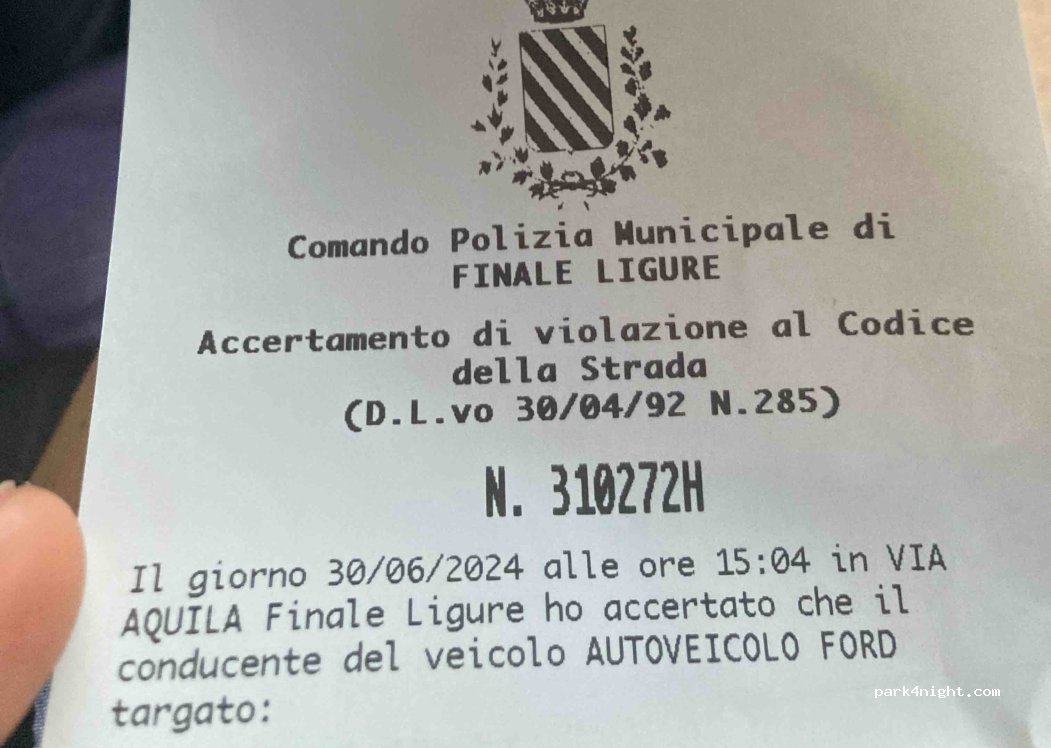 Parcheggio silenzioso di notte, a 15 minuti a piedi da Finalborgo, non a pagamento e neanche a disco orario. C'è un piccolo bidone dell'immondizia.