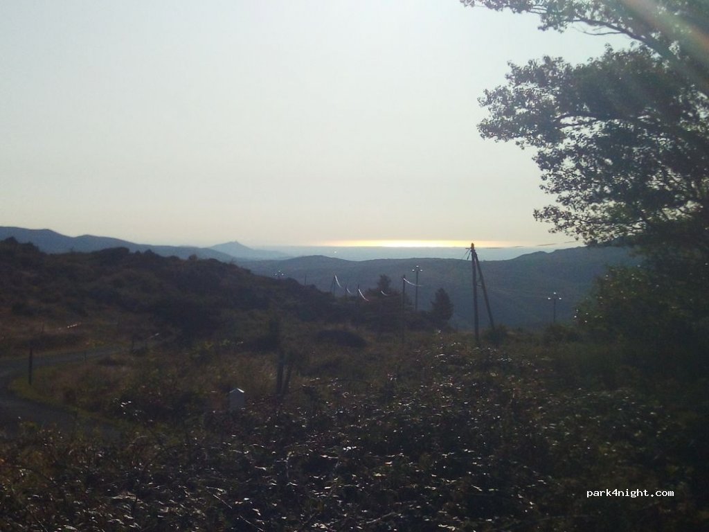 Big flat place, next to the road with sea view. At night, there is absolute peace, on the passing road is zero traffic at night. For large motorhomes, the road is rather unsuitable.