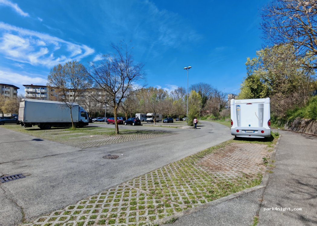 Parcheggio gratuito di ampie dimensioni, con alcuni stalli idonei anche ad un piccolo camper entro i 6,5 mt., vicino al centro. Ideale per visita città.