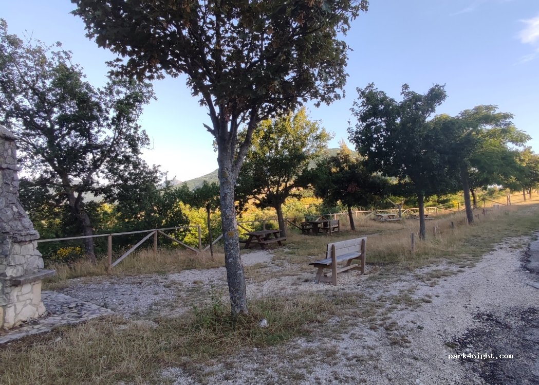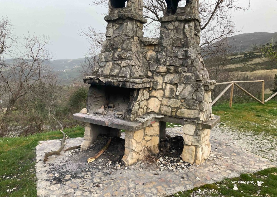 On the edge of ultra quiet road in a small landscaped picnic area with barbecue. One flat place easy access for van type vehicle. Otherwise on the edge of the road slightly sloping (provide calles) there is room for small motor homes less than 7 m between the trees .... good walks