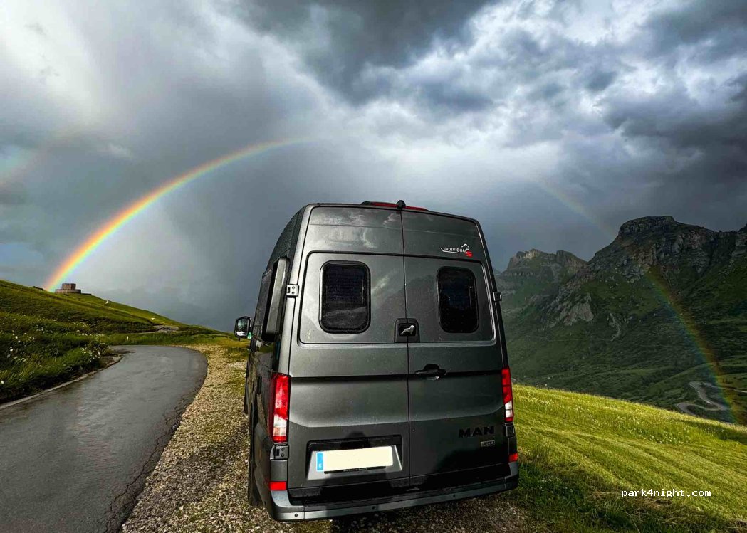 Piccolo parcheggio alla fine della strada vicino al rifugio per il mausoleo delle sepolture tedesche. Tecnicamente nessun parcheggio in campeggio / notte. Rispetta e lascia dietro la spazzatura e la carta.