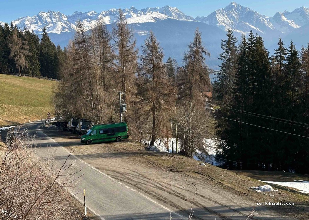 Parkplatz an einer Seilbahnstation, die im Winter in Betrieb ist. Ist schön für eine Nacht und auch wenn es direkt an der Straße ist, fährt nachts kaum ein Auto dort. Anreise nach 16:00/17:00 Uhr ist sinnvoll, dann sind die Wandertouristen weg.