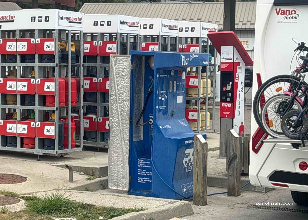 Une personne aimable et serviable pour la bouteille de gaz ; un local chauffé pour la laverie et on peut se garer devant ; une borne flot-bleu et eaux usés à la station-service ; tout est parfait.