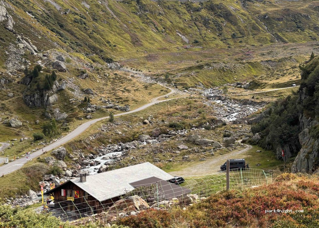 alle Parkplätze um diese 180 Grad Kurve, links wie rechts gehören zum Hotel Steingletscher. Wer hier parkt, sollte auch etwas konsumieren. Im Camper übernachten wird vom Besitzer toleriert, jedoch aus Respekt in Absprache mit ihm. Die 5.- vom Kommentar unten ist die Gebühr für das Befahren der Strasse und parkieren Richtung Umpol Parkplatz und gehen in die Kasse der KWO.