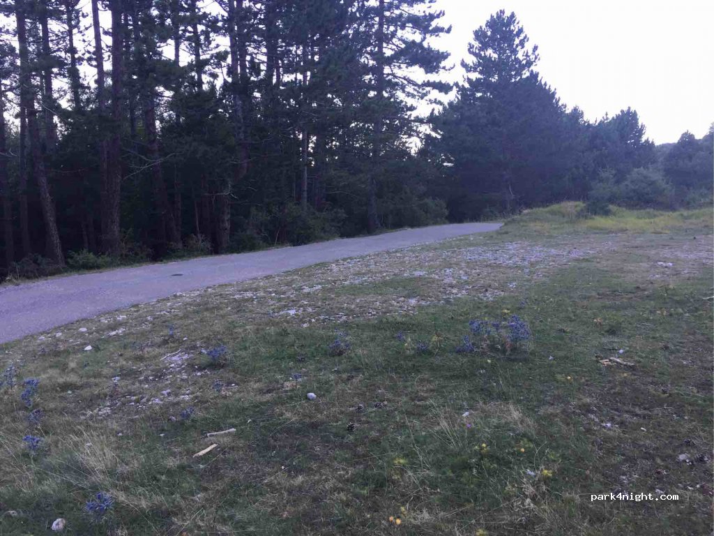 Joli coin en lisière de forêt. Herbe rase et terrain assez plat au bord d’une petite route très peu fréquentée. Avons reçu la visite d’un garde forestier et service incendie pour nous demander de ne pas faire de feu et de repartir dès le matin. Contact très sympathique