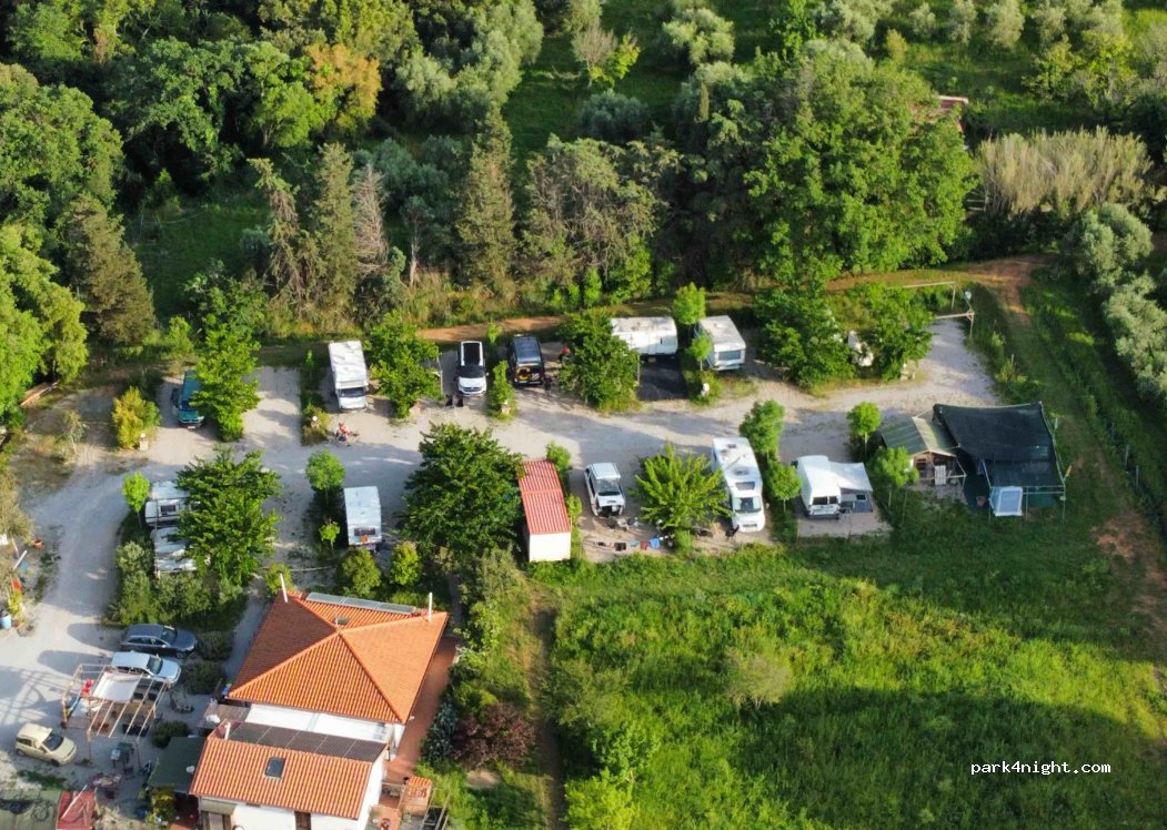Sehr schöner Platz ,er ist umgeben von Olivenhainen .Die Anfahrt ist sehr steil.Besitzer ist sehr freundlich unsere Hunde wurden auch freundlich Empfangen.Sanitär gepflegt und sauber.Eine Küche ist auch vorhanden in der man sein Essen zubereiten kann.