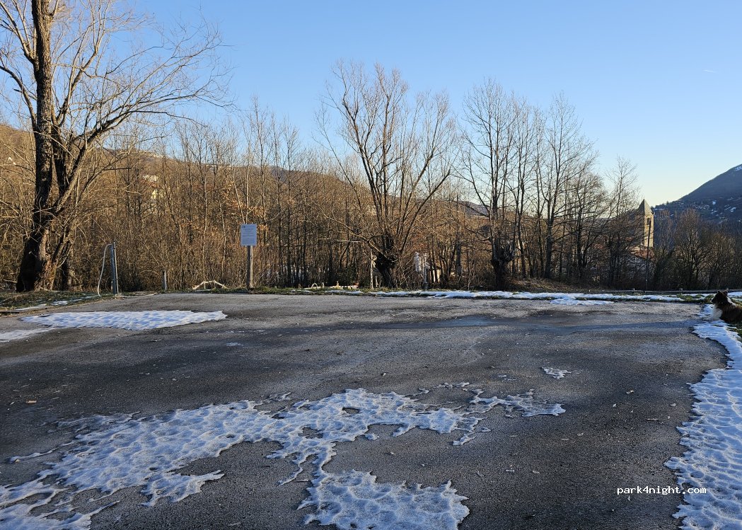 Zone de repos calme, située au-dessus du village de Monchio delle Corti. Le bar à l'entrée est cadenassé, la clé doit être récupérée au restaurant Da Berto situé au centre. Ne pas s'engager sur la route si vous n'avez pas la clé, car pour les camping-cars de grande taille, il est impossible de tourner avec la barre fermée.