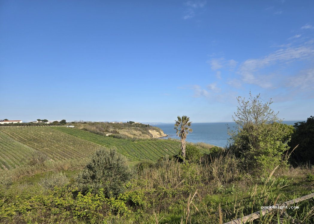 Rustige plek om de nacht door te brengen met zicht op zee. Je kan er ook makkelijk naar het strand. Er is echter niets in de buurt op wandelafstand. De weg naar Ortona is levensgevaarlijk voor voetgangers en de zogezegde wandelpaden die de wandelapps weergeven zijn privé-wegen en vaak afgezet door een hek. In de zomer zal de strandbar van de camping wel open zijn. Eind mei was die nog gesloten.