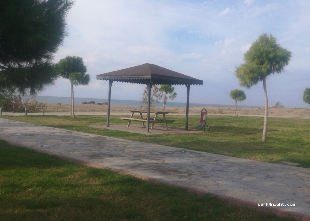 Bardzo fajne ciche miejsce z fajnym placem zabaw. Park ławeczkami i placem zabaw. Do plaży 100m. Ciche miejsce wśród zatłoczonego hotelami i hotelowymi plażami brzegu. Ale są minusy: przede wszystkim pracownicy hotelu mieszkają obok na plaży i chodzą po tym terenie cały czas. UWAGA WAZNE w trakcie sezonu lokalna policja wyprasza i zabrania pobytu na noc. Wyprosili nas PO JEDNEJ NOCY