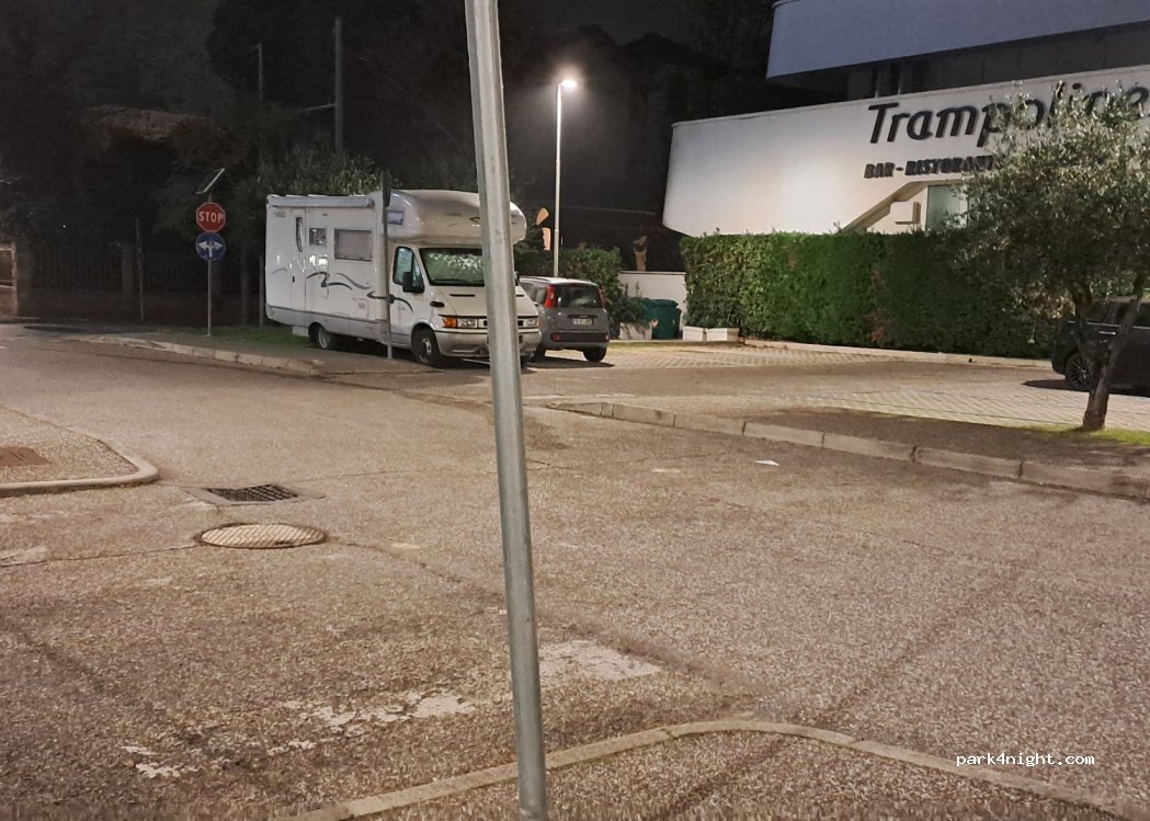 parcheggio gratuito da ottobre a febbraio. Alcuni stalli consentono la sosta di camper da 7 metri. fuori stagione ottimo per una passeggiata in via Dante sul lungomare o in spiaggia. nessun servizio. Rumorosità accettabile durante la notte.