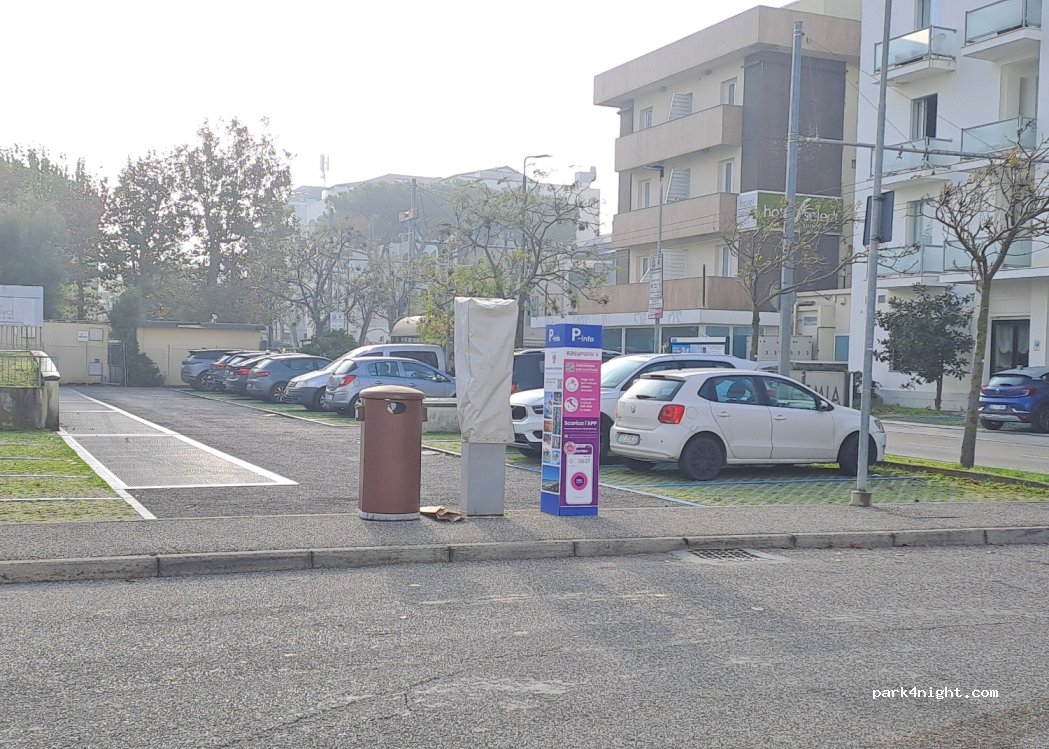 Parcheggio a pagamento dal 1/03 al 30/09, consiglio solo per piccoli furgonati da 540cm o meno, in quanto i posti sono tutti per auto. Utilizzato per visitare riccione, solo quando me ne sono andato ho notato un cartello che vieta veicoli sotto i 2 metri in tutto il parcheggio.