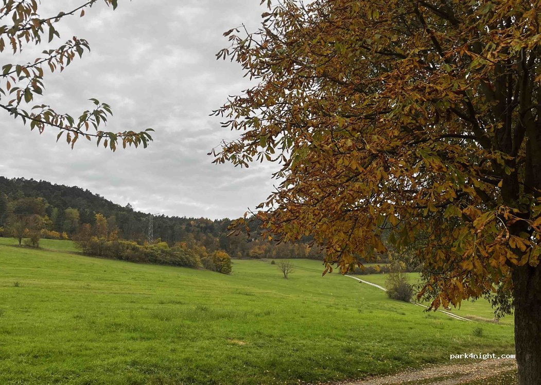 Mooie wandel omgeving. Stonden vannacht met T3 buren. Op zich stille plek hoewel je op ons dak vaak toch de snelweg hoort. Staan prullenbakken opt terrein maar das dan ook alles. Aan de rand van Jena een uitstekende plek.