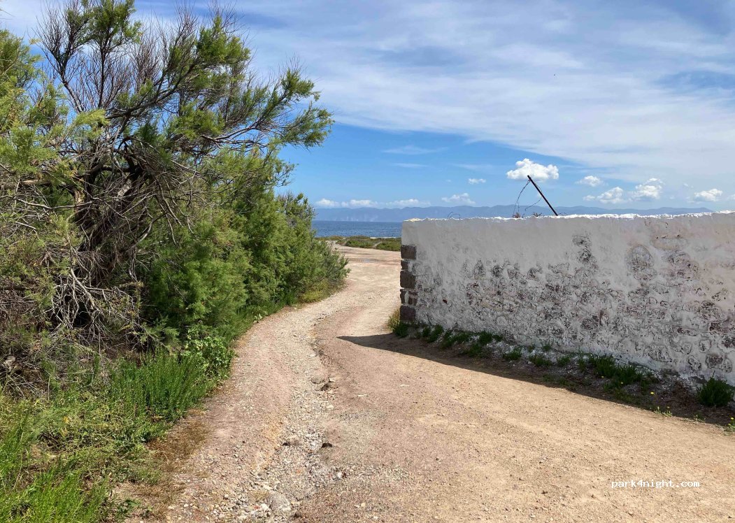 posto tranquillo e ampio parcheggio. vista bellissima e accesso al mare diretto su splendide insenature sulla scogliera. dormito qui il 14/09 . alla sera passa qualche locale ad ammirare le luci della Sardegna . unica pecca alla sera abbiamo trovato molte zanzare