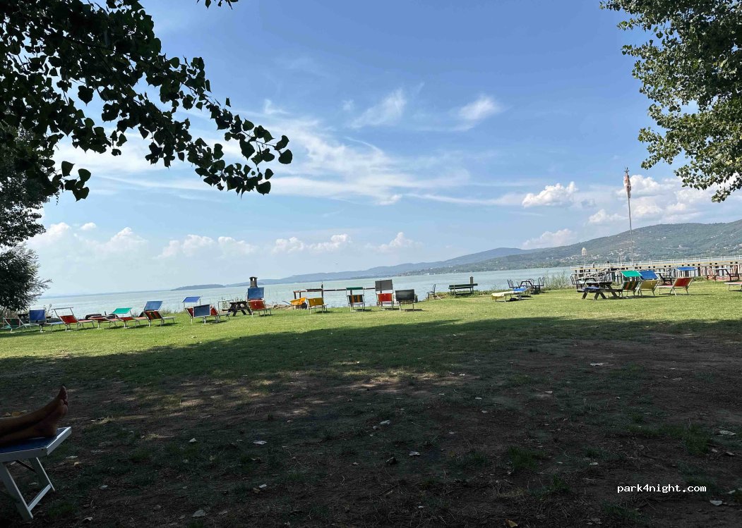Wat een leuke camping aan het meer. Super vriendelijke man van de camping zelf. Je kunt ‘s avonds een zelfgemaakte pizza kopen en er is een bar met frisse pintjes. Het sanitair is verouderd, maar op deze plaats heeft het z’n charme. Propere toiletten en zalige warme douches. Leuke plek die centraal ligt om te wandelen of de trein te nemen naar Perugia. AANRADER!