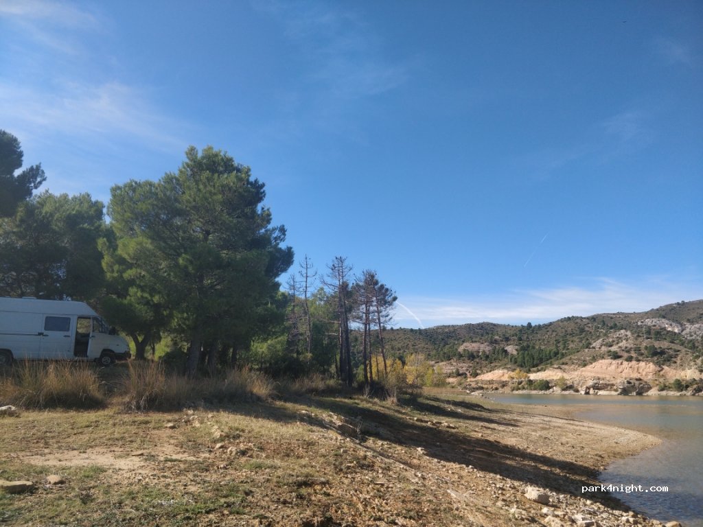 Sitio muy tranquilo y sombreado al lado del pantano donde nos paramos a comer. Es verdad que para llegar es todo camino de tierra con desnivel y grietas,sentido único. No recomiendo autocaravanas ni vehículos muy grandes.