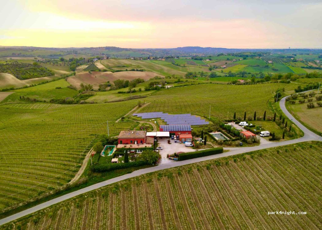 Ein sehr schöner Platz um nicht nur eine Nacht zu bleiben, umgeben von Weinbergen mit Blick auf San Marino. Sehr nette Inhaber. Alles vorhanden. Wir haben gleich noch eine Weinverkostung gemacht.