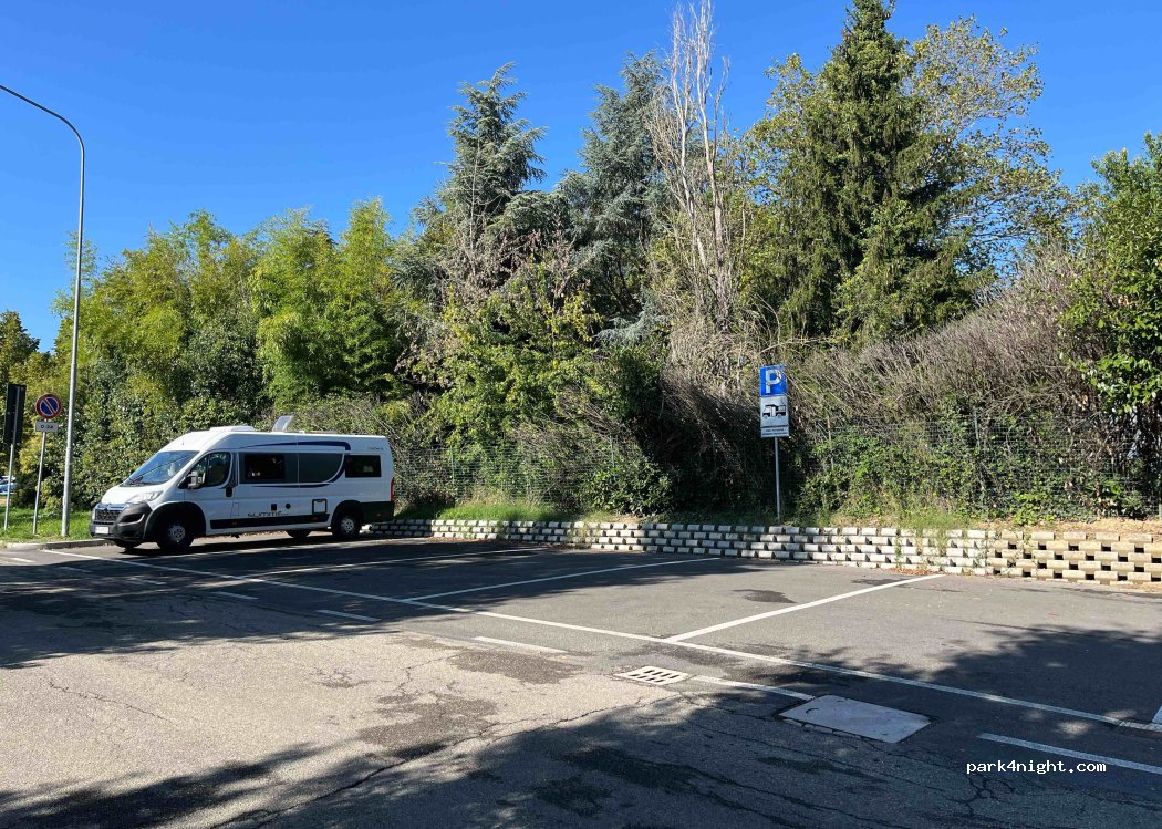 Aire pour camping car avec peu de places. Gratuit,pas d’électricité ni d’eau potable mais possibilité de vider les eaux grises et noires. La gare de la ville mène rapidement à Bologne. Nuit calme .