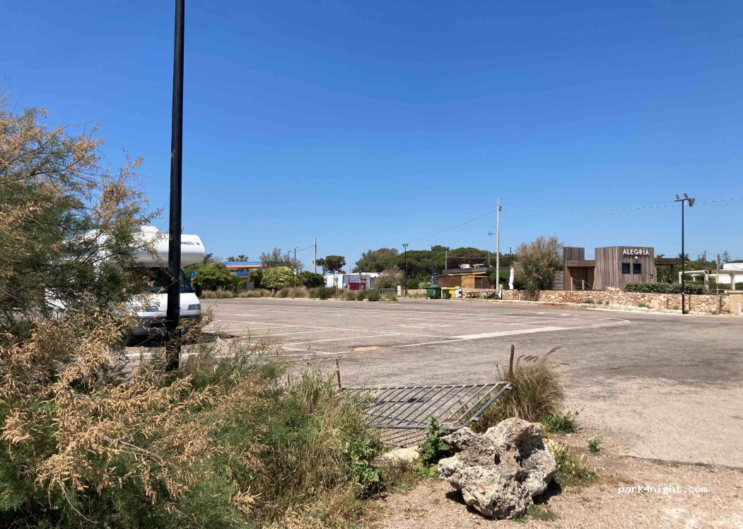 Ampio parcheggio pianeggiante, pavimentato e molto luminoso di notte (troppo). È ai piedi di TORRE SUDA. Puoi vedere il mare e la sera alcune persone vengono a correre o portare a spasso il loro cane. Posto molto tranquillo fuori stagione. Molti giochi per bambini.