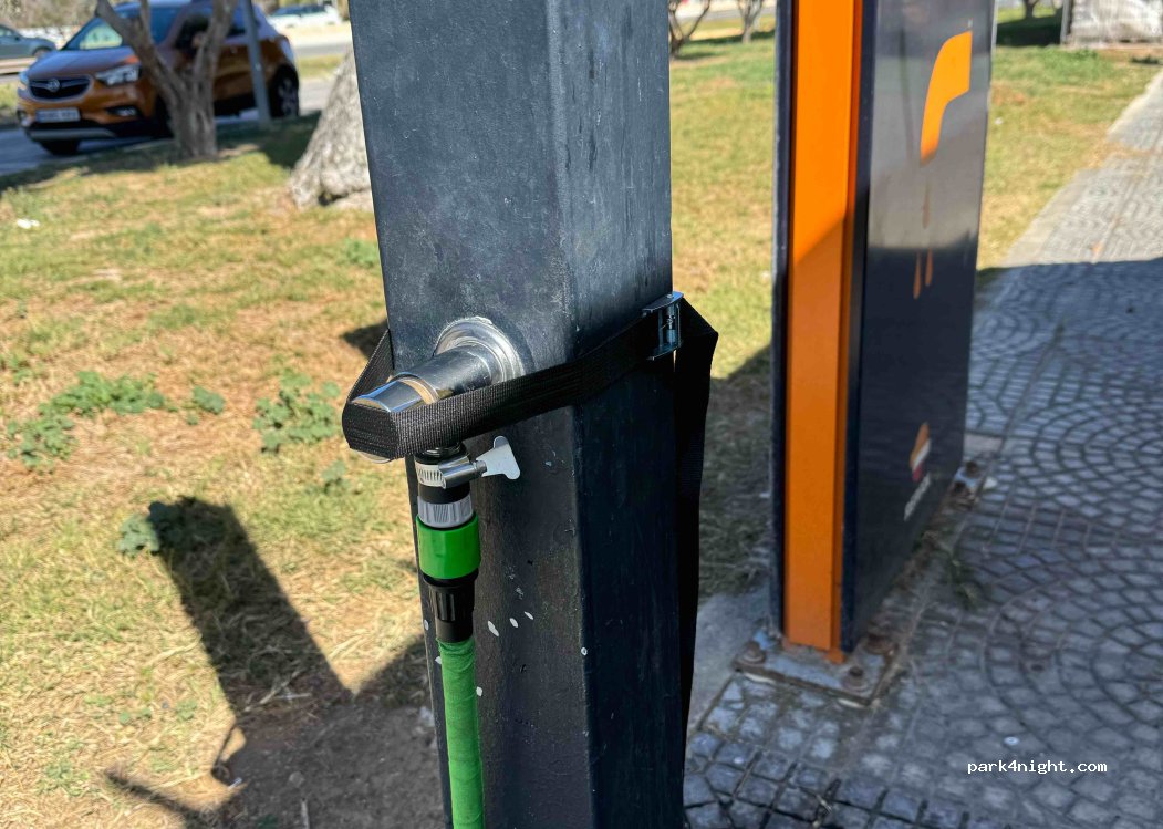 Super sympa. Eau non potable mais super pour faire le plein pour la douche. C’est un robinet et n’ont pas de tuyaux à disposition.