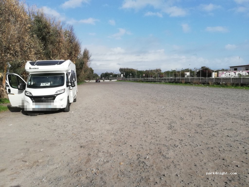 Large parking accessible to all, with green space, but with more trash ... We stayed one night, noisy in the evening and morning because of the proximity of the road, the night calm. It can help. The sea is on the other side of the road. Nothing special. No service